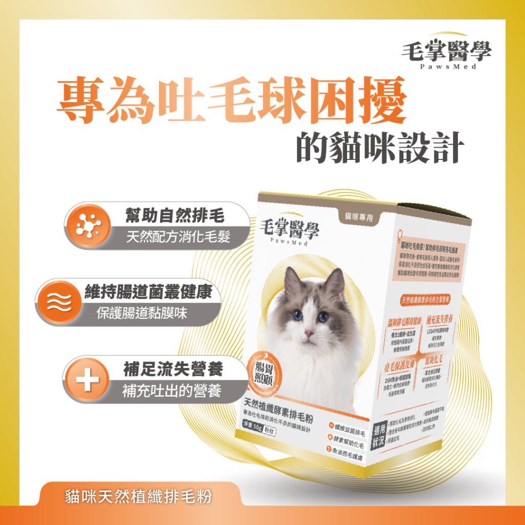 📢 毛掌醫學|貓咪天然植纖排毛粉